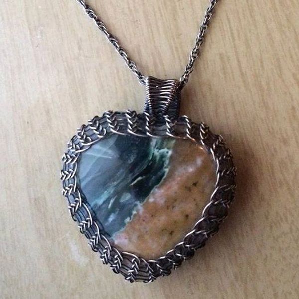 Yes, I know that a very famous movie has a necklace called "Heart of the Ocean". I can't imagine anther pendant that could be more "Heart of the Sea" than this one with a naalbinding setting.