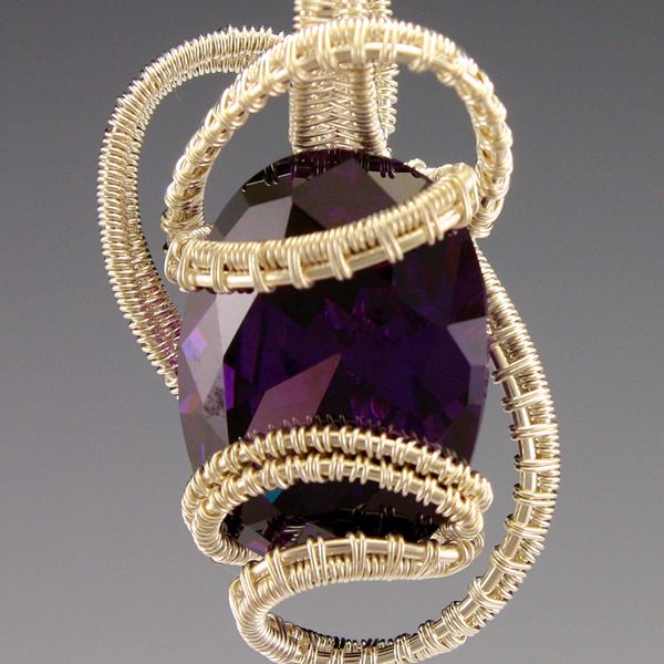 This dark amethyst is just one of the hand woven sterling silver wire and